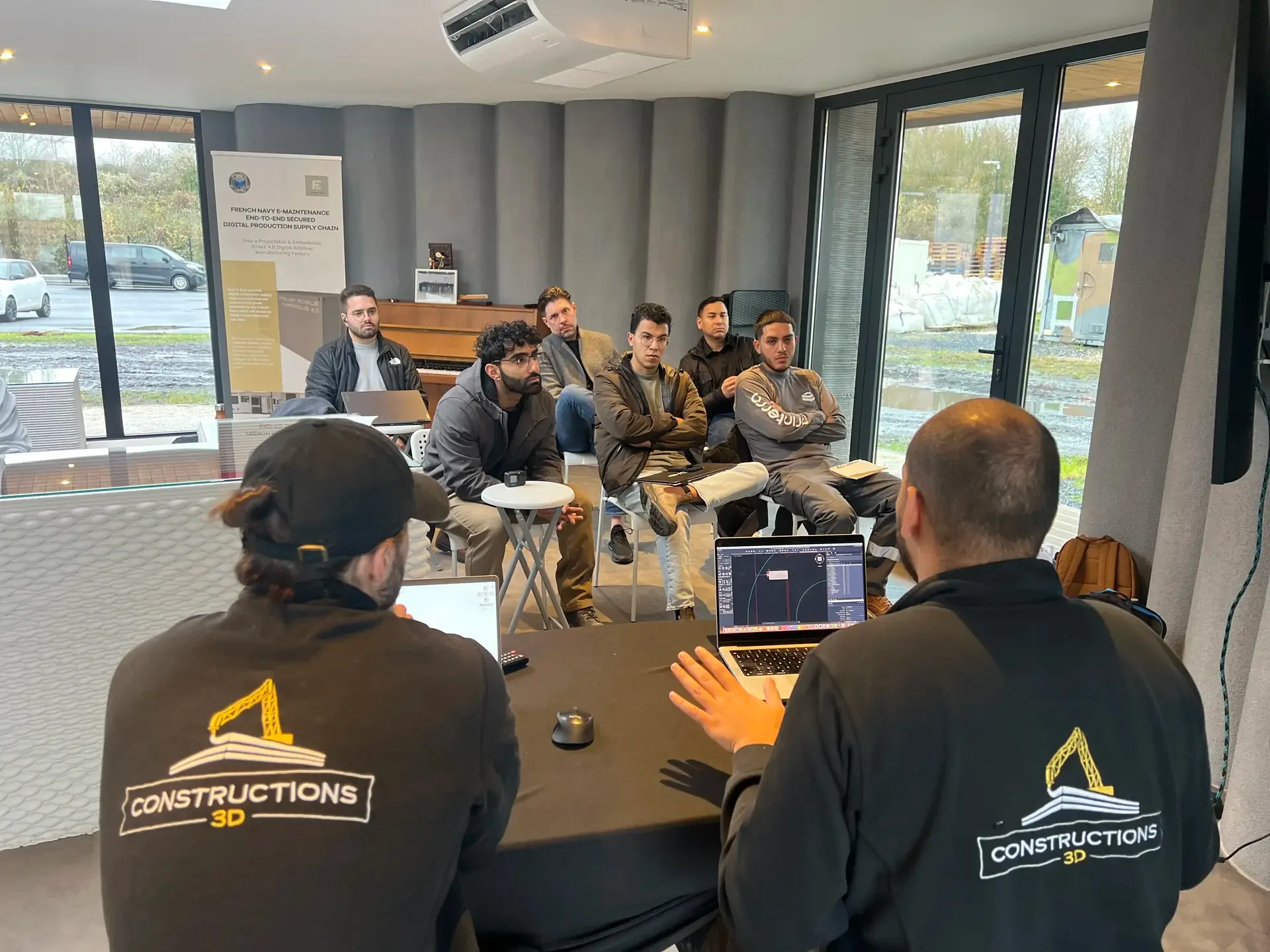 We recently had the pleasure of meeting the Printerra team face-to-face, deepening our partnership through an intensive five-day knowledge exchange at our headquarters, La Citadelle des Savoir-Faire, in France. There’s nothing like hands-on collaboration to strengthen ties—especially when teams are an ocean apart. Printerra’s founders, Leigh Newman and Yafes “Nick” Gabuji, along with three engineers and a materials specialist, joined Constructions-3D experts Mattis Solé and Antoine Urquizar for immersive sessions focused on the MaxiPrinter. Already experienced in 3DCP and additive construction, the Printerra team dove into operational and software details to ensure they’re fully equipped to commission and optimize the MaxiPrinter for both clients and internal projects. This in-person exchange solidified our strategic alliance and underscored our shared vision for advancing additive construction in Canada and beyond.